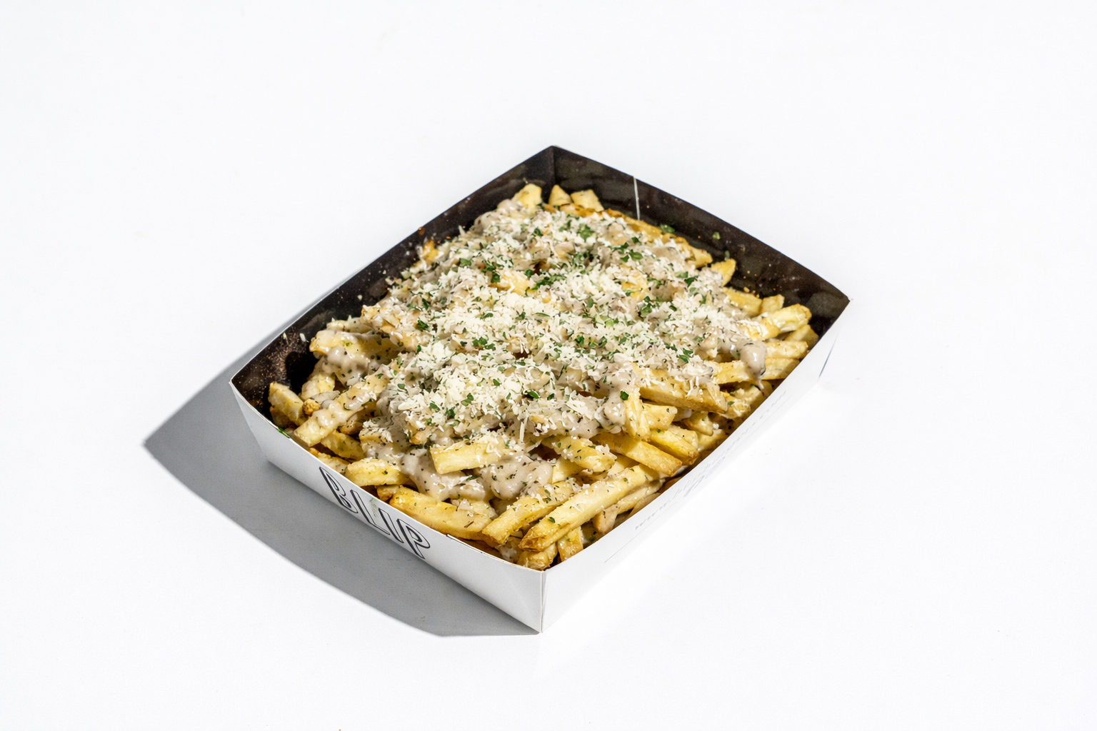 our signature skin-on-fries with housemade truffle mayo topped with parmesan.