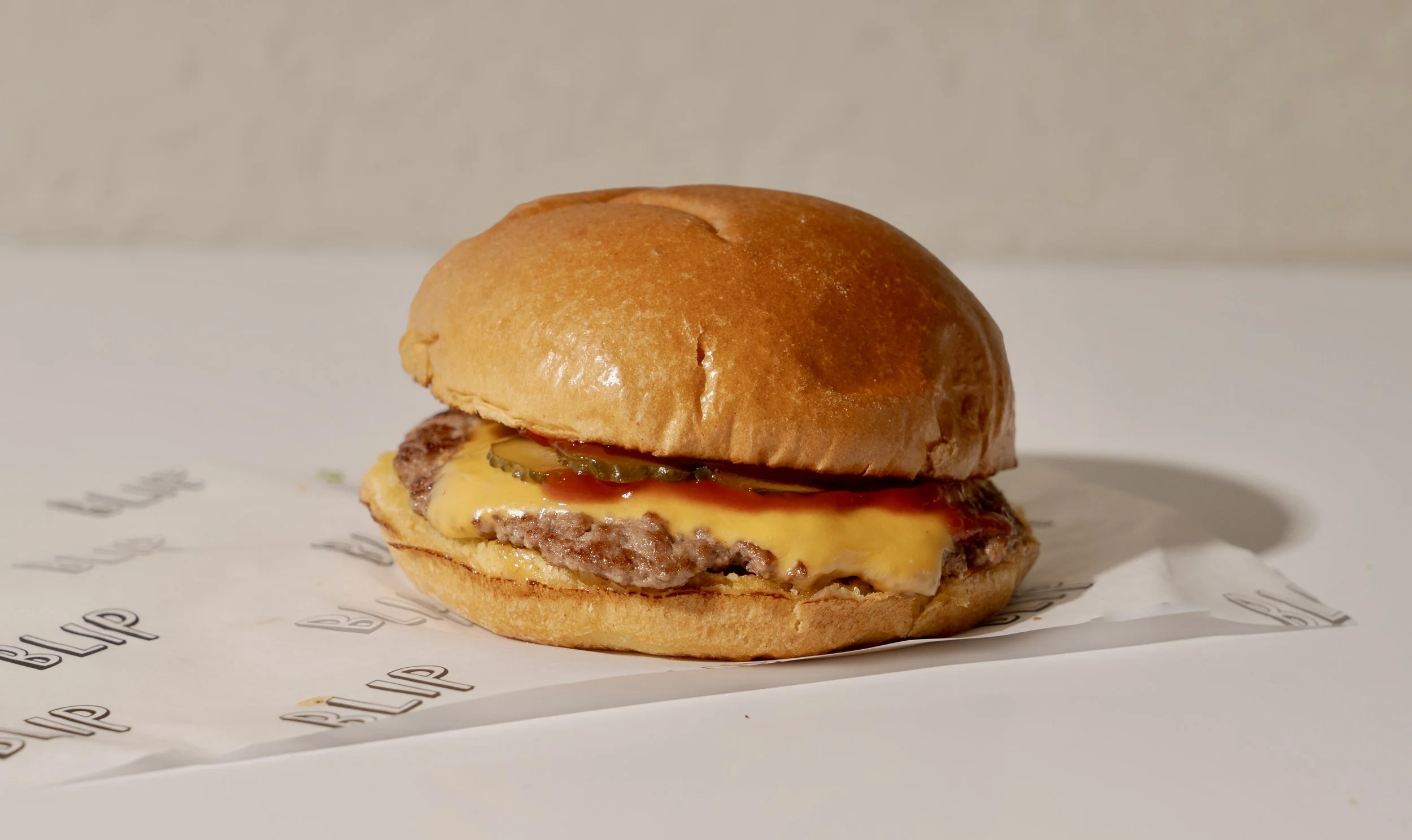 our soft potato bun with one smashed 28 day aged beef patty, premium cheese, gherkins and ketchup.