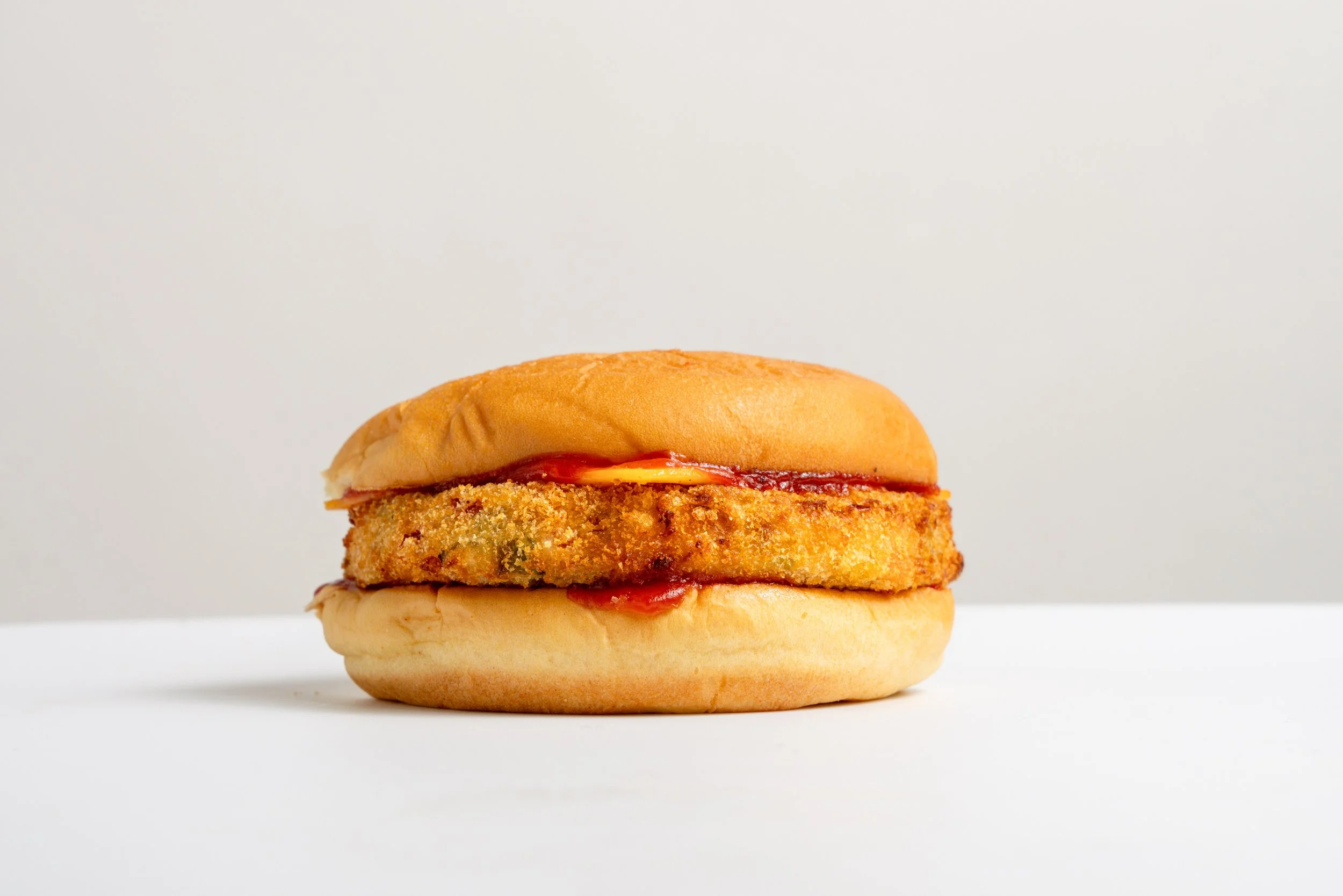 our soft potato bun with one premium veggie patty, premium cheese and ketchup.