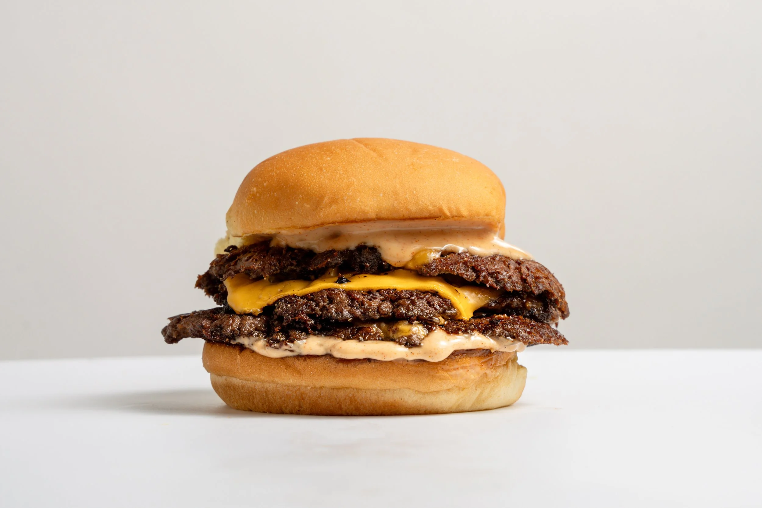 our soft potato bun with three smashed beef patties, premium cheese and signature house sauce.