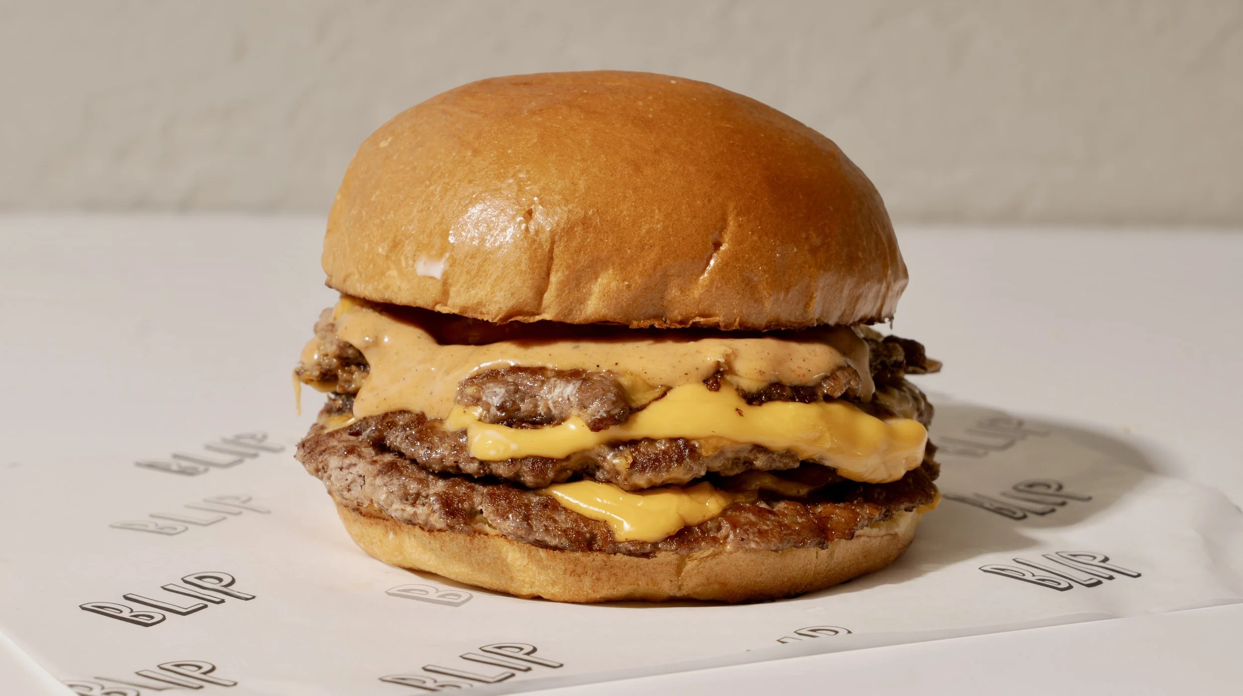 our soft potato bun with three smashed 28 day aged beef patties, premium cheese and signature house sauce.
