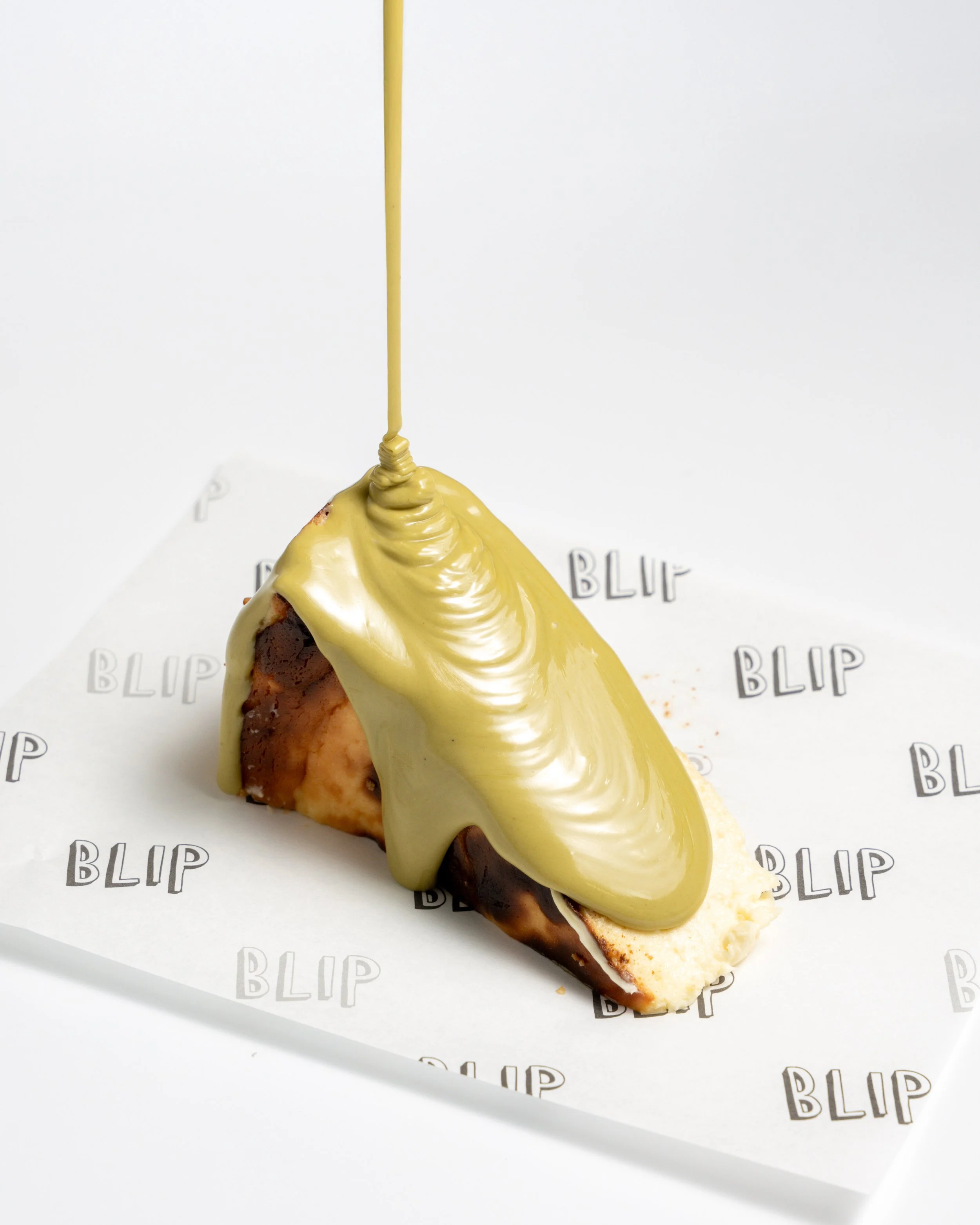 housemade basque cheesecake with a choice of belgian chocolate or pistachio sauce.