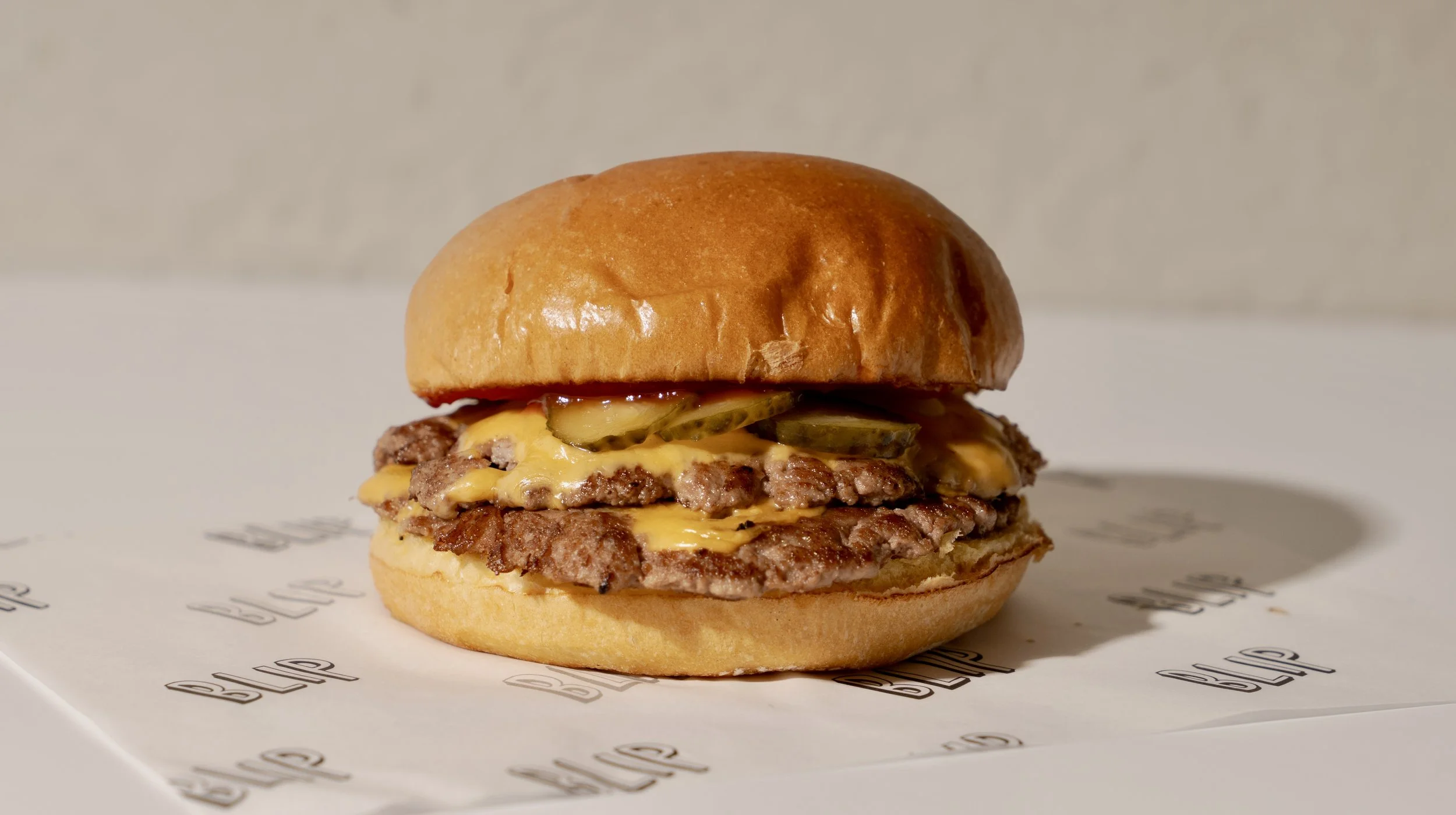 our soft potato bun with two 28 day aged smashed beef patties, premium cheese, gherkins and ketchup.